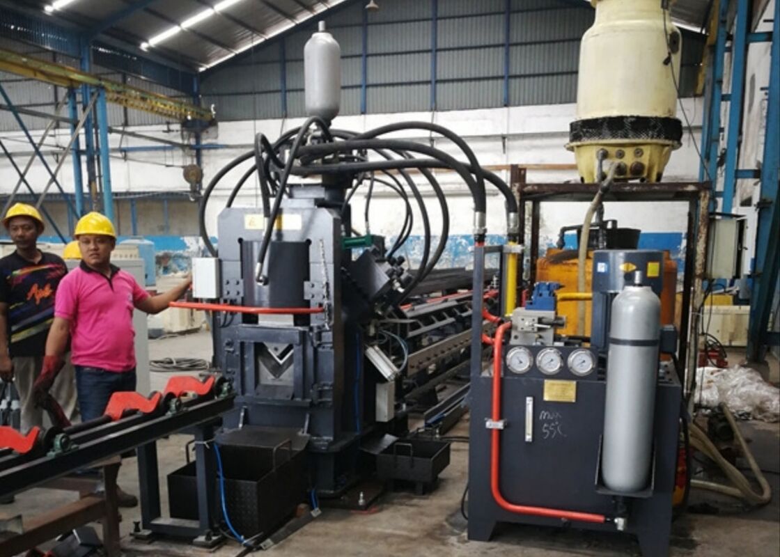(4) The shearing unit consists of a frame-type structure, a shearing cylinder, an upper blade mechanism, and a lower blade mechanism. The lower blade mechanism is adjustable to accommodate varying angle steel thicknesses, ensuring optimal cutting quality.